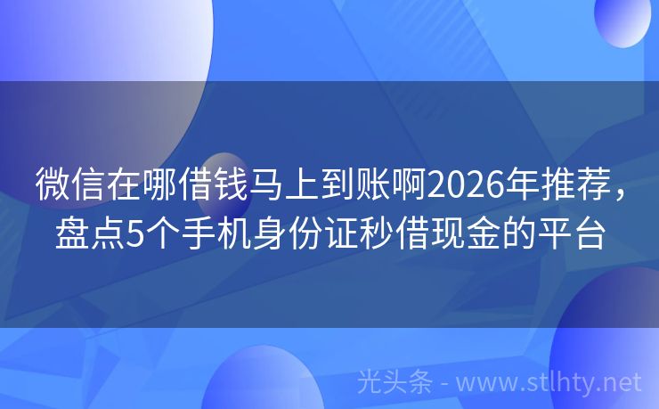 微信在哪借钱马上到账啊2026年推荐,盘点5个手机身份证秒借现金的平台 在如今这个社会,资金周转成为了许多人的日常需求,提到“容易下款的贷款软件”,相信大家都在寻找一个既便捷又可靠的微信在哪借钱马上到账啊,我就为大家推荐五个深受用户喜爱的贷款平台,它们不仅审批速度快,而且额度灵活,服务周到,下面,让我们一起来看看这五个微信在哪借钱马上到账啊的具体情况吧! 2026年的微...