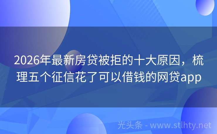 2026年最新房贷被拒的十大原因,梳理五个征信花了可以借钱的网贷app 面对信用挑战,我们为您提供房贷被拒的十大原因。探索五大精心挑选、兼容广泛信用背景的房贷被拒的十大原因,让资金流动更自由。正规渠道,灵活选项,助您跨越障碍,实现目标。 2026年的房贷被拒的十大原因有:智享钱包、融资易、时时贷、小麦粒、金满仓等。 一、智享钱包 智享钱包是一款小额信贷产品,由持牌金融机...