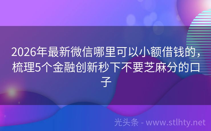 2026年最新微信哪里可以小额借钱的,梳理5个金融创新秒下不要芝麻分的口子 生活中总有突如其来的小尴尬,钱包瘦了,账单却鼓了。别急,今天就给你揭秘5个应急神器——小额微信哪里可以小额借钱的,它们不查大数据,审核宽松,线上操作,秒速到账,让你轻松应对临时资金需求,不再为千八百的缺口烦恼! 2026年的微信哪里可以小额借钱的有:瞬信贷通、团借宝、360借条、乐享快借、森森借呗等...