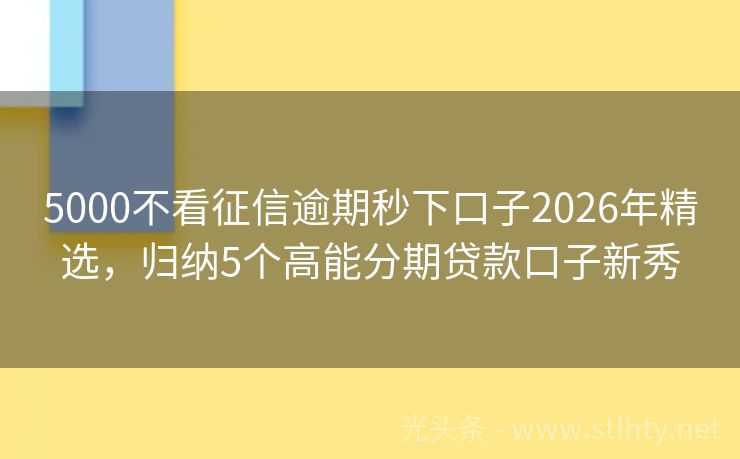 5000不看征信逾期秒下口子2026年精选,归纳5个高能分期贷款口子新秀 “在这个数字金融时代,支付宝贷款的便捷性自不必说,但总有一些朋友希望尝试不同的5000不看征信逾期秒下口子,寻找更加适合自己的金融解决方案,就让我来为大家推荐几款‘不用支付宝贷款的软件’,让您在享受金融服务的同时,也能有更多的选择。” 2026年的5000不看征信逾期秒下口子有:鑫融钱包+、惠商贷、...
