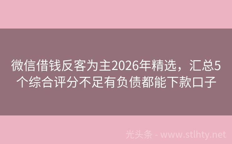 微信借钱反客为主2026年精选,汇总5个综合评分不足有负债都能下款口子 “在如今快节奏的生活中,借钱已经成为不少人的应急之需,面对市面上琳琅满目的借钱平台,哪个比较好呢?就让我来为大家详细介绍一下五个备受好评的微信借钱反客为主,帮助大家找到最适合自己的借款渠道。” 2026年的微信借钱反客为主有:现金分期宝、现金易融宝贷、月月盈贷、易贷宝速贷、钱速借宝等。 一、现金分期...