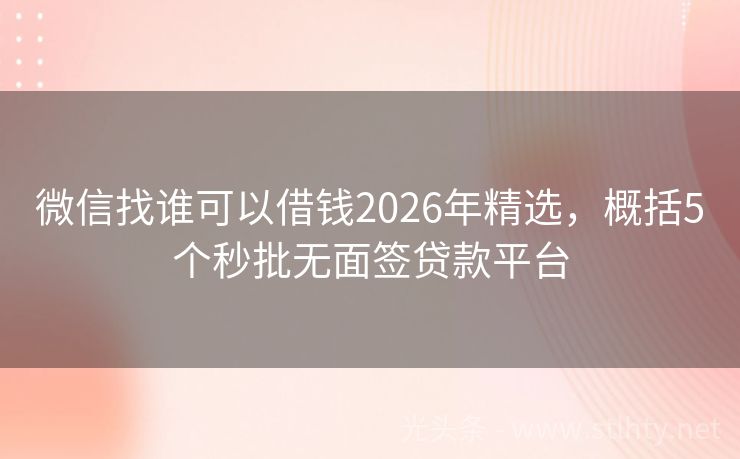 微信找谁可以借钱2026年精选,概括5个秒批无面签贷款平台 现如今,信用贷款已成为许多朋友解决资金周转问题的便捷选择,但有些人因为各种原因,征信记录并不理想,这就让一些网贷平台成了他们的“救命稻草”,哪些网贷平台不看征信,不依赖大数据呢?我将为大家推荐五个这样的微信找谁可以借钱,让您在资金周转上多一份选择。 2026年的微信找谁可以借钱有:闪电钱包、小金鱼、...