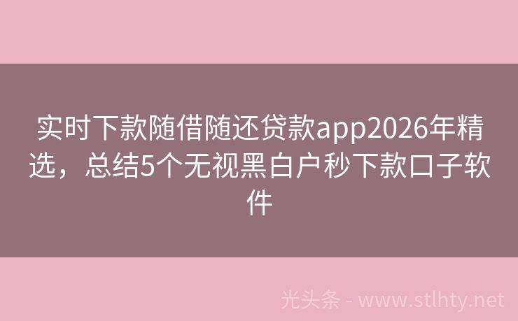 实时下款随借随还贷款app2026年精选,总结5个无视黑白户秒下款口子软件 “借款平台不看征信就能贷款的?”这是许多急需资金的朋友心中的疑问,我就来为大家推荐几个无需查看征信就能成功贷款实时下款随借随还贷款app,让您在资金周转上少一份烦恼,多一份便捷。 2026年的实时下款随借随还贷款app有:现金秒贷易行、快易贷融、借款易融、钱袋快融贷、易融钱包等。 一、现金秒贷易行 ...