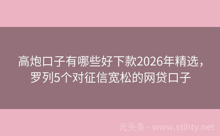 高炮口子有哪些好下款2026年精选,罗列5个对征信宽松的网贷口子 急需资金?别担心,我们为您精选了5个不看征信、下款无难度的高炮口子有哪些好下款,轻松解决您的资金难题!快来试试吧! 2026年的高炮口子有哪些好下款有:钱贷乐、金瑞Pro钱包、中原快贷、借款易宝、小金象等。 一、钱贷乐 钱贷乐凭借身份证即可申请,额度上限为20万元,日利率为0.02%起如果你使用了贷...