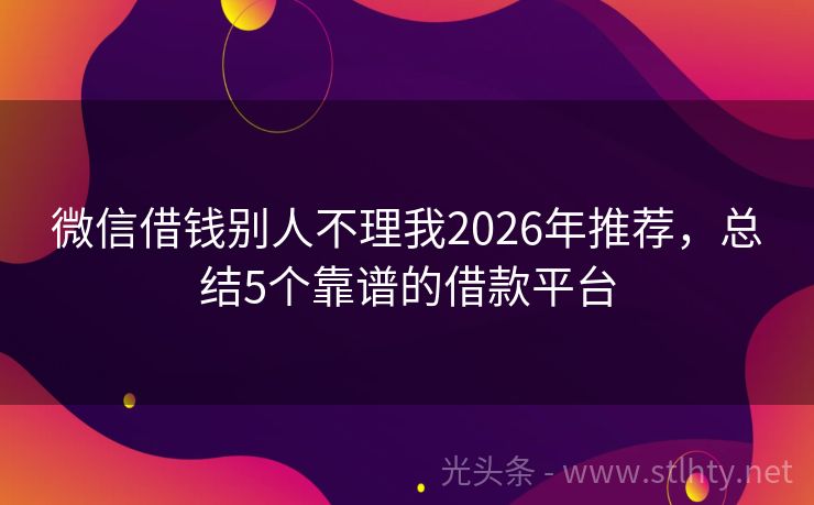 微信借钱别人不理我2026年推荐,总结5个靠谱的借款平台 “借钱容易,但安全可靠更重要!”在众多借款需求中,选择一个正规渠道的APP进行借款,是确保资金安全的关键,就让我来为大家推荐几个信誉良好、审核通过率高的微信借钱别人不理我,帮助大家轻松解决资金问题。 2026年的微信借钱别人不理我有:向上金服、现金卡、天天钱包、读秒贷、金诺钱包等。 一、向上金服 向...