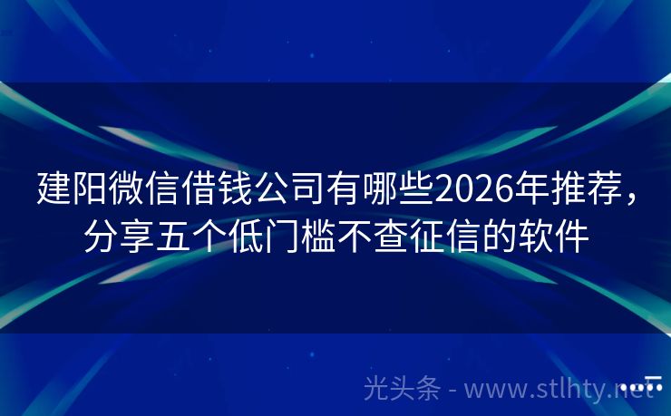 建阳微信借钱公司有哪些2026年推荐,分享五个低门槛不查征信的软件 寻找低息高额度的建阳微信借钱公司有哪些?试试以下五个热门建阳微信借钱公司有哪些,轻松申请,快速下款! 2026年的建阳微信借钱公司有哪些有:时时钱包贷、钱速融贷宝、借贷易融途、米粒白条、哆来米钱包等。 一、时时钱包贷 时时钱包贷是一款征信差负债高也能申请的贷款平台,现已转型为助贷平台,匹配银行和持牌...