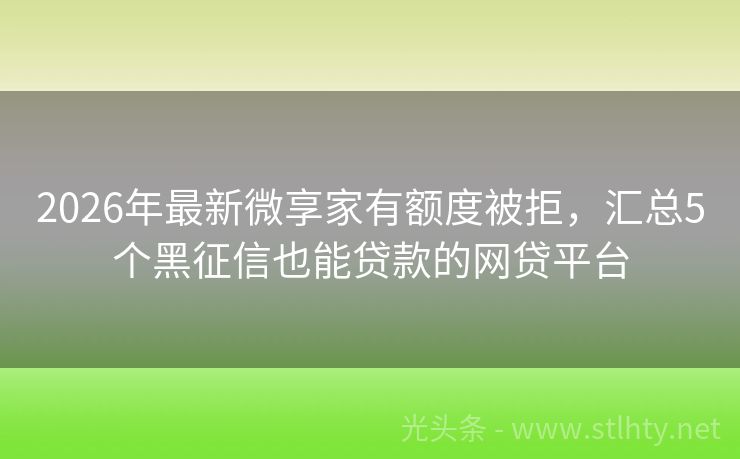 2026年最新微享家有额度被拒,汇总5个黑征信也能贷款的网贷平台 聊起“微享家有额度被拒”,总有人问:“现在还能做吗?是不是都凉了?”其实啊,这东西就跟天气一样,时好时坏,关键还得看你个人情况。征信干净如洗的,自然是哪哪都通畅;可要是征信有点“小瑕疵”,比如逾期、查询多,那就得另辟蹊径了。别急,我这就给大家推荐几个,征信不那么“光鲜”也能试试的微享家有额度被拒,说...