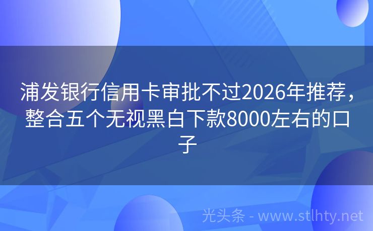 浦发银行信用卡审批不过2026年推荐,整合五个无视黑白下款8000左右的口子 “浦发银行信用卡审批不过?”这是许多人在急需资金时心中的疑问,我就来为大家详细介绍一下市面上几个正规可靠的借钱平台,让您在急需资金时能够放心选择。 2026年的浦发银行信用卡审批不过有:借钱花、中原快贷、现金快车、易捷钱包、飞融金等。 一、借钱花 借钱花是一款专为征信不佳用户打造的网贷产品,无需复杂...