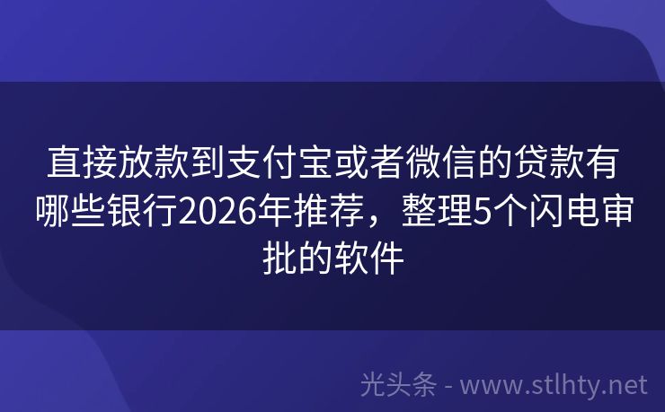 直接放款到支付宝或者微信的贷款有哪些银行2026年推荐,整理5个闪电审批的软件 青春无畏,梦想启航。特选五大友好直接放款到支付宝或者微信的贷款有哪些银行,面向18岁以上的年轻人,提供灵活资金支持,审核快速,当天即可完成放款,助你把握每个成长瞬间,勇敢追梦,不负韶华。 2026年的直接放款到支付宝或者微信的贷款有哪些银行有:小金鹿贷、钱速借融途、橄榄信贷、祥云借款、盈盈速贷等。 ...