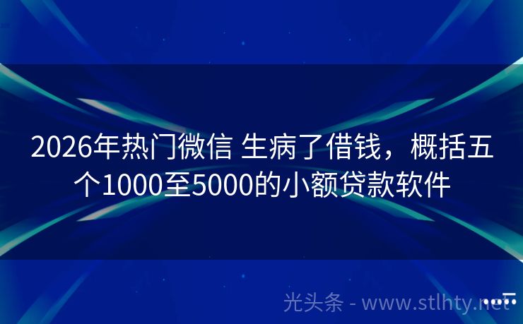 2026年热门微信 生病了借钱,概括五个1000至5000的小额贷款软件 随着互联网技术的飞速发展,网上贷款已成为越来越多人的选择,网上贷款是否合法”,答案是肯定的,在我国,正规合法的网贷平台都在监管之下运营,为广大用户提供便捷、安全的金融服务,我就为大家推荐五个备受好评的微信 生病了借钱,下面,我们一起来详细了解这些平台的额度、优势和特色服务。 2026年的微信 生病了...