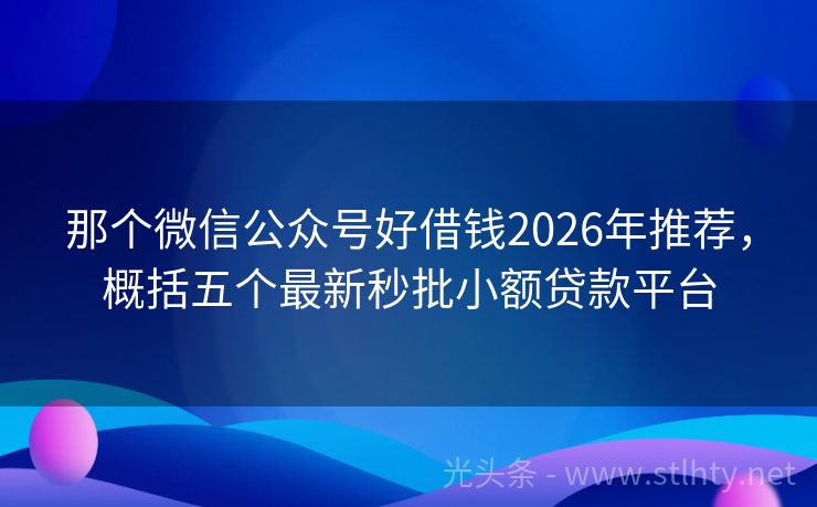 那个微信公众号好借钱2026年推荐,概括五个最新秒批小额贷款平台 面对财务困境?别担心!我们精选了5大热门那个微信公众号好借钱,专为解决您的燃眉之急。即便您有逾期记录或高负债,也能在这里找到希望之光。无需繁琐手续,快速审批,资金即刻到账。 2026年的那个微信公众号好借钱有:钱速融宝、汇融钱包、快融贷、钱速达宝、省时贷融等。 一、钱速融宝 钱速融宝也是比较容易借钱...