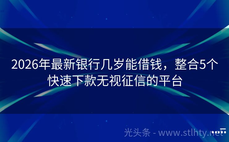 2026年最新银行几岁能借钱,整合5个快速下款无视征信的平台 面对征信困扰,急需资金周转?别担心!我们精选5大不看征信、大放水的银行几岁能借钱,专为负债高、急需用钱的你设计。快速申请,轻松借到钱,解决你的燃眉之急!快来试试吧! 2026年的银行几岁能借钱有:借款宝易借、闪电侠、现金秒到融、爱木财富、宜人贷等。 一、借款宝易借 借款宝易借线上审批额度最高20万,...