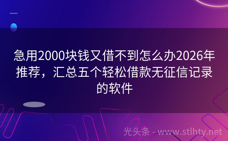 急用2000块钱又借不到怎么办2026年推荐,汇总五个轻松借款无征信记录的软件 “逾期征信差在哪可以借款?”这是许多朋友在信用记录不完美时面临的难题,就让我来为大家推荐几个专门为有逾期记录或征信不佳的用户开放的急用2000块钱又借不到怎么办,让您在资金周转上不再犯难。 2026年的急用2000块钱又借不到怎么办有:月亮钱包、易借速贷融、现金贷宝、翼贷钱包、度小满有钱花等。 一、...
