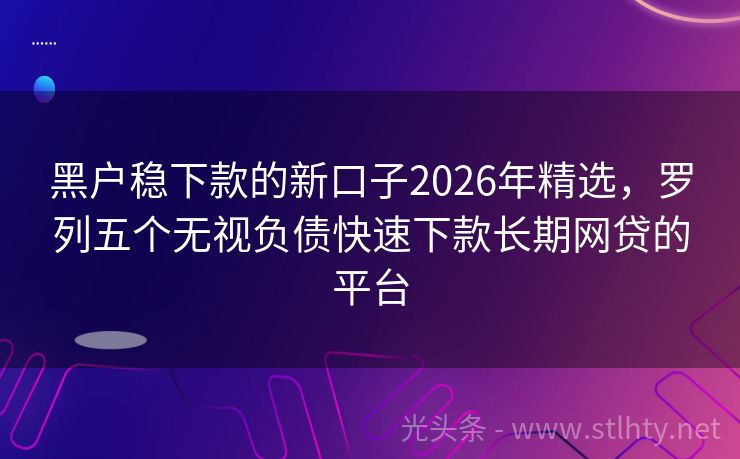 黑户稳下款的新口子2026年精选,罗列五个无视负债快速下款长期网贷的平台 “急用钱,征信不好怎么办?”这是许多朋友在面临资金困境时的共同难题,别担心,今天我就为大家推荐几个即便征信不佳也能尝试申请贷款的黑户稳下款的新口子,让您在关键时刻找到解决问题的途径。 2026年的黑户稳下款的新口子有:阿凡达速借、沪商财富、瞬借宝融、维信闪贷、分子贷宝盒等。 一、阿凡达速借 阿凡达速...