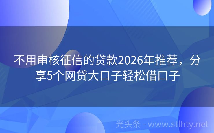 不用审核征信的贷款2026年推荐,分享5个网贷大口子轻松借口子 网上借贷正规平台有哪些?这是许多借款人在寻求资金支持时最为关心的问题,在众多借贷平台中,如何选择一个正规、安全、可靠的平台呢?我就为大家推荐五个备受好评的不用审核征信的贷款,让您在借款路上少走弯路。 2026年的不用审核征信的贷款有:现金流速贷、借贷易融宝、随手贷、借款宝贷、钱袋易融宝等。 一、现金...
