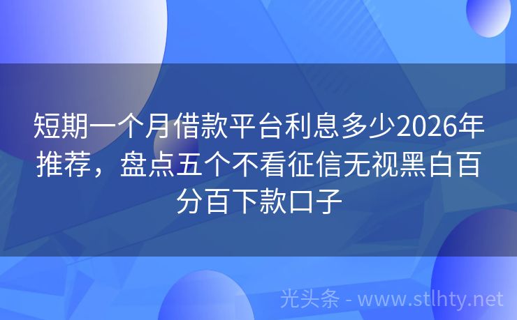 短期一个月借款平台利息多少2026年推荐,盘点五个不看征信无视黑白百分百下款口子 2026,黑户也能轻松借到钱!以下5个短期一个月借款平台利息多少不看征信、不查大数据,让你快速下款,解决燃眉之急。立即申请,告别借钱难题! 2026年的短期一个月借款平台利息多少有:人人贷借款、金满堂、翡翠分期、民生易贷、快融贷等。 一、人人贷借款 人人贷借款平台利率低至每天0.3元/1000元,适...