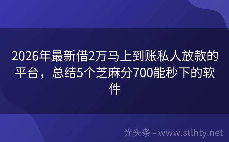 2026年最新借2万马上到账私人放款的平台,总结5个芝麻分700能秒下的软件 无视负债、大数据花户、征信黑户,这5个借2万马上到账私人放款的平台助你轻松借到钱。无需繁琐手续,快速审批,资金秒到账。 2026年的借2万马上到账私人放款的平台有:快易贷通、小金豆、鑫速Pro钱包、现金宝盒、鑫易Pro+钱包等。 一、快易贷通 快易贷通纯信用贷款,年龄在20-35周岁之间,有个人身份...