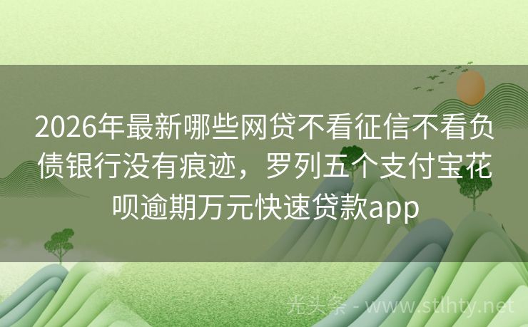 2026年最新哪些网贷不看征信不看负债银行没有痕迹,罗列五个支付宝花呗逾期万元快速贷款app 网贷作为一种新型的融资方式,因其便捷、快速的特点受到了很多人的青睐。那么哪些网贷不看征信不看负债银行没有痕迹也能下的口子有哪些,最新推荐5个哪些网贷不看征信不看负债银行没有痕迹也能下的口子。 2026年的哪些网贷不看征信不看负债银行没有痕迹有:快易贷通、时时钱包、易融贷通宝、现金站、洋洋花呗等。 一...