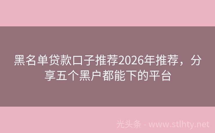 黑名单贷款口子推荐2026年推荐,分享五个黑户都能下的平台 “各位朋友们,2026年网络贷款市场风起云涌,‘网黑必下款’成为了许多借款人关注的焦点,我就来为大家推荐几个信誉好、额度高、审批快的黑名单贷款口子推荐,让你轻松解决资金难题,让我们一起走进这些热门平台,看看它们都有哪些优势和特点吧!” 2026年的黑名单贷款口子推荐有:速下宝、借款宝易借、闪借易贷融...