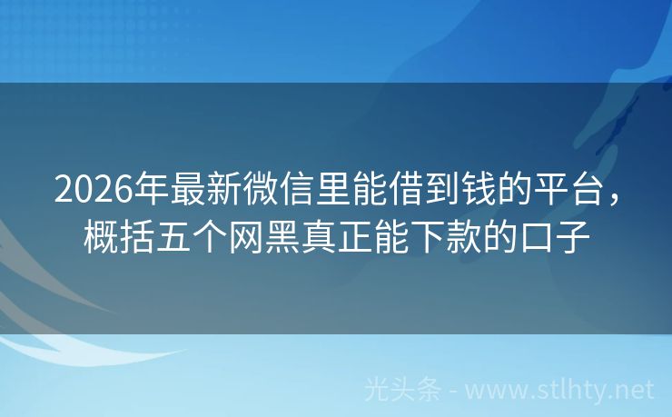 2026年最新微信里能借到钱的平台,概括五个网黑真正能下款的口子 虽然面临信用挑战,但总有光明出路。介绍五家最新、专为复杂信用情况设计的微信里能借到钱的平台,助力解决燃眉之急。透明流程,快捷审批,重拾信心,向前迈进。 2026年的微信里能借到钱的平台有:汇融钱包+、闪银钱包、易融贷通宝、超爱速借、超人卡等。 一、汇融钱包+ 汇融钱包+,好通过,公司由中国邮政储蓄银...