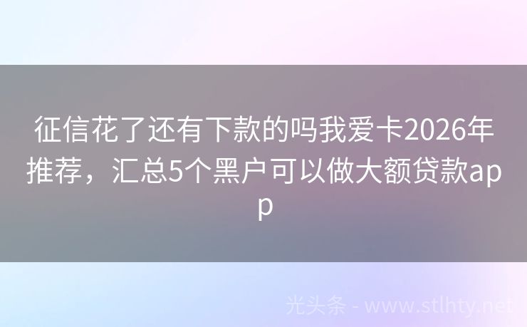 征信花了还有下款的吗我爱卡2026年推荐,汇总5个黑户可以做大额贷款app 在如今这个快速发展的时代,借钱分期还款已成为许多人的日常需求,市面上有许多优秀的借钱软件,可以让我们轻松分期还款,满足各种资金需求,就让我为大家详细介绍几款可以分期36期的征信花了还有下款的吗我爱卡,帮助大家找到最适合自己的平台。 2026年的征信花了还有下款的吗我爱卡有:钱速融易、钱袋易贷融、汇融...