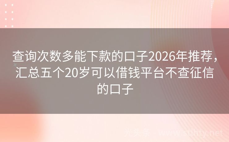 查询次数多能下款的口子2026年推荐,汇总五个20岁可以借钱平台不查征信的口子 嘿,各位年轻的朋友们,是不是在为学业、创业或是生活中的突发状况急需一笔资金呢?别担心,现在市面上有很多专门为学生提供借款的平台,我就来给大家详细介绍几个热门的查询次数多能下款的口子,帮你们解决资金难题,咱们就一起看看这五个平台的具体情况吧! 2026年的查询次数多能下款的口子有:借贷宝快易、金瑞龙、...
