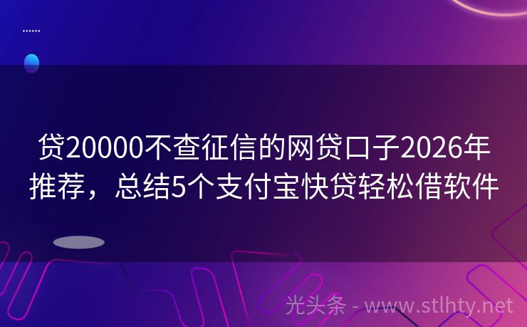 贷20000不查征信的网贷口子2026年推荐,总结5个支付宝快贷轻松借软件 在如今,小额贷款成为了许多朋友解决临时资金周转问题的便捷途径,我就要给大家推荐几个正规、可靠的的贷20000不查征信的网贷口子,让你在500元以下的借款需求得到满足,下面,就让我们一起来看看这些平台的额度、优势和特色服务吧! 2026年的贷20000不查征信的网贷口子有:惠商易借、哆来咪钱包、现金易...