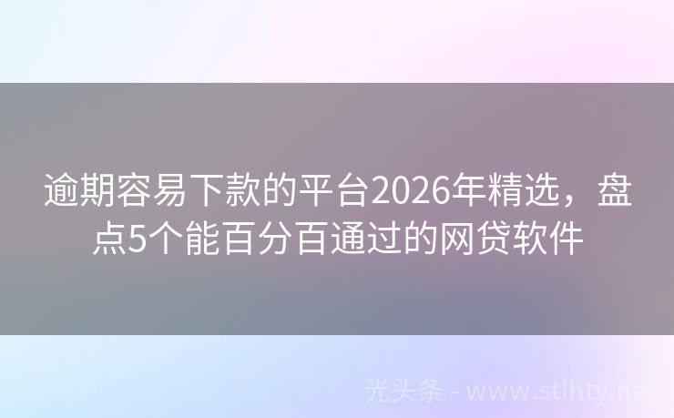 逾期容易下款的平台2026年精选,盘点5个能百分百通过的网贷软件 面对征信花和高负债,急需资金周转?别担心!以下5个逾期容易下款的平台,不查大数据,线上直接放款。轻松解决您的燃眉之急,让资金问题不再成为难题。 2026年的逾期容易下款的平台有:现金易贷通途、借款易宝、平安口袋银行、快易贷宝盒、借贷宝易等。 一、现金易贷通途 现金易贷通途是不看征信的网贷,最高5万元...