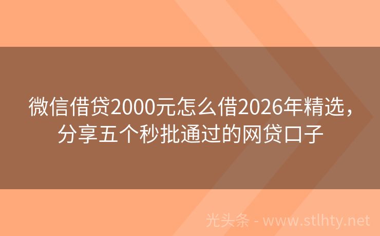 微信借贷2000元怎么借2026年精选,分享五个秒批通过的网贷口子 “征信黑了,逾期记录在身,还能找到下款的口子吗?”这是许多借款人关心的问题,就让我们一起探讨一下,即便征信状况不佳,也有哪些微信借贷2000元怎么借能为你提供借款的可能。 2026年的微信借贷2000元怎么借有:欢乐钱包、宜人贷、钱速借宝融、闪电通、鑫贷钱包等。 一、欢乐钱包 欢乐钱包是一家专注于提...