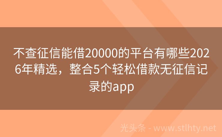 不查征信能借20000的平台有哪些2026年精选,整合5个轻松借款无征信记录的app “急需用钱,却不知道哪里可以快速贷款?别急,今天就来给大家盘点一下‘7天贷款口子’,让你快速找到适合自己的贷款渠道!我将为您详细介绍以下几个不查征信能借20000的平台有哪些,让您了解它们的额度、优势和特色服务。” 2026年的不查征信能借20000的平台有哪些有:钻石分期、现金巴士、玛瑙分期、现金...