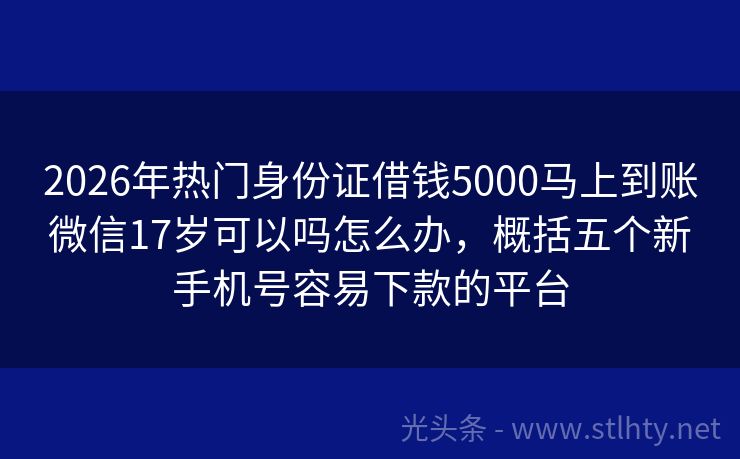 2026年热门身份证借钱5000马上到账微信17岁可以吗怎么办,概括五个新手机号容易下款的平台 “各位朋友,大家好!今天咱们来聊聊一个大家都关心的话题:高负债无逾期情况下的贷款有哪些,在现实生活中,不少朋友因为各种原因背负了一定的债务,但信用记录良好,没有逾期,针对这种情况,有哪些贷款平台可以提供合适的贷款服务呢?我将为大家详细介绍五个信誉良好、服务优质的身份证借钱5000马上到账微信17岁可...