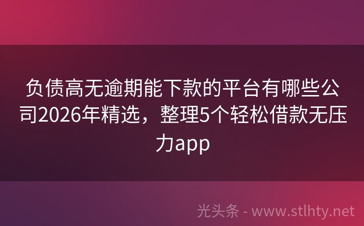 负债高无逾期能下款的平台有哪些公司2026年精选,整理5个轻松借款无压力app “在现实生活中,征信不良往往成为贷款路上的绊脚石,别灰心!我就为大家推荐几款即便征信不佳也能尝试申请贷款的软件,帮助大家解决资金周转的难题,下面,就让我们一起来看看这些人性化的负债高无逾期能下款的平台有哪些公司吧!” 2026年的负债高无逾期能下款的平台有哪些公司有:惠享花花、贷你无忧、融资易贷、智...