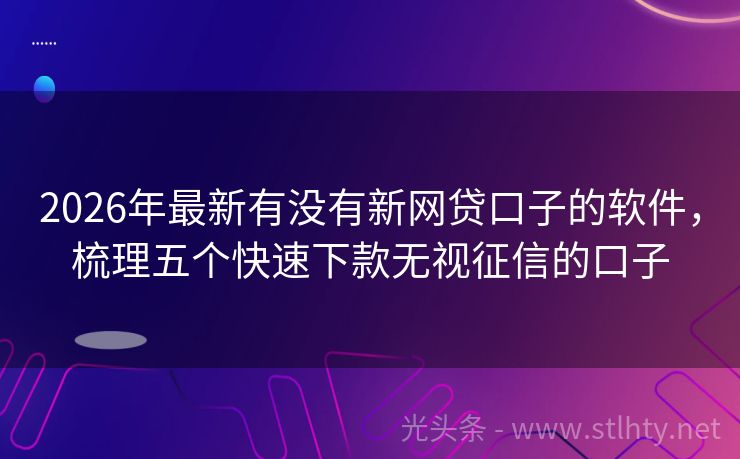 2026年最新有没有新网贷口子的软件,梳理五个快速下款无视征信的口子 近年来,黑网贷问题层出不穷,给不少借款人带来了巨大的困扰和损失,为了让大家免受黑网贷的危害,今天我要为大家推荐几个正规、安全、可靠的有没有新网贷口子的软件,这些平台不仅有着严格的审核制度,还能提供优质的服务和合理的贷款额度,就让我们一起来看看这些有没有新网贷口子的软件吧! 2026年的有没有新网贷口...