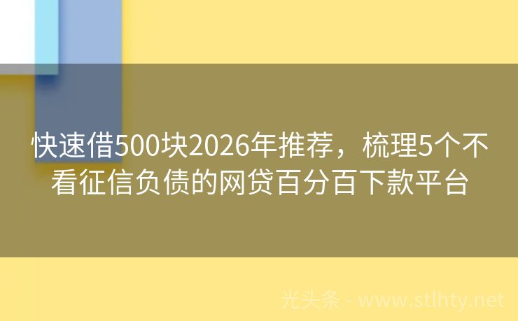 快速借500块2026年推荐,梳理5个不看征信负债的网贷百分百下款平台 在这个快节奏的时代,资金周转问题时常困扰着大家,不用担心,今天我要向大家推荐一些不看征信的借款APP,让您在急需资金时,轻松解决燃眉之急,以下五大快速借500块,不仅额度灵活,而且审批快速,服务优质,让您借款无忧! 2026年的快速借500块有:借款易融、钱鼓鼓、美团生活费、快易贷宝、桔子买单等。 ...