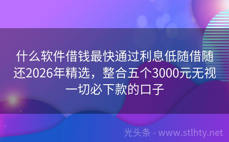 什么软件借钱最快通过利息低随借随还2026年精选,整合五个3000元无视一切必下款的口子 面对花户黑户的财务困境,我们精选了五个不看征信、直接线上放款的什么软件借钱最快通过利息低随借随还。这些什么软件借钱最快通过利息低随借随还审批快速、流程简便,让您轻松解决资金难题。 2026年的什么软件借钱最快通过利息低随借随还有:口袋贷、彩虹信贷、现金巴士、拍拍贷借款、橄榄分期等。 一、口袋贷 口袋...