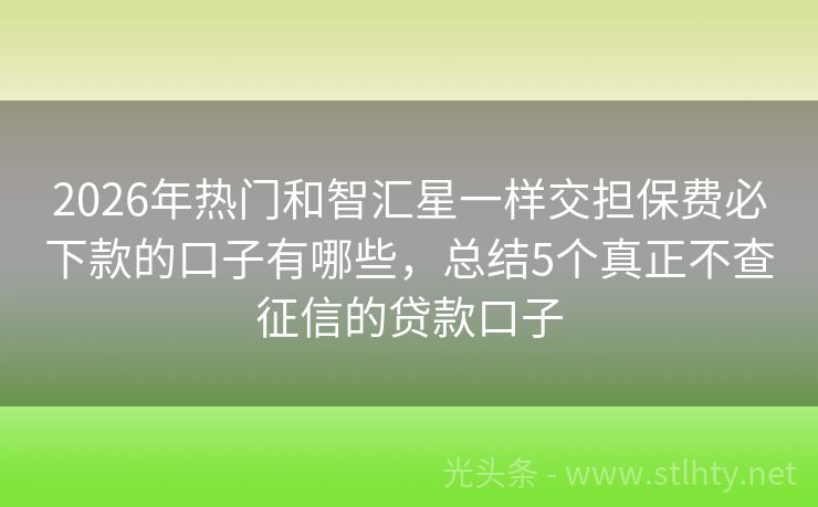 2026年热门和智汇星一样交担保费必下款的口子有哪些,总结5个真正不查征信的贷款口子 “大家好,今天要给大家聊聊一个备受关注的话题:2026年不看征信的和智汇星一样交担保费必下款的口子有哪些,在现实生活中,有时候我们急需用钱,但又不想或者不能通过传统的征信渠道申请贷款,有哪些网贷平台可以满足我们的需求呢?我将为大家推荐五个不看征信的和智汇星一样交担保费必下款的口子有哪些,让你在资金周...