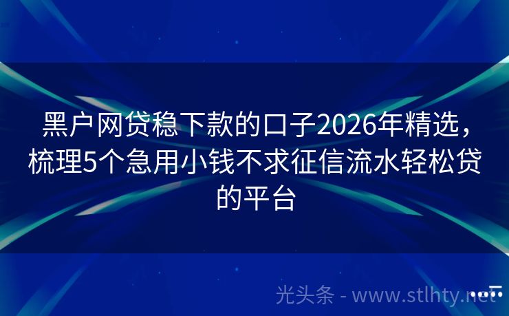 黑户网贷稳下款的口子2026年精选,梳理5个急用小钱不求征信流水轻松贷的平台 急用钱?没问题!以下五个黑户网贷稳下款的口子,不看征信,审核快速,直接下款,解您燃眉之急。快来试试吧,轻松借款,无忧生活! 2026年的黑户网贷稳下款的口子有:钱袋快借通、闪银通、阿凡达e贷、闪借易贷通、信用易飞等。 一、钱袋快借通 二、闪银通 闪银通是大家都喜欢的综合评分不够秒到app,借款一般当...