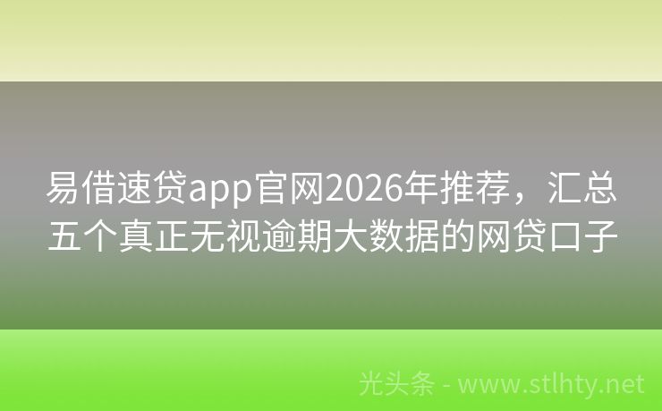 易借速贷app官网2026年推荐,汇总五个真正无视逾期大数据的网贷口子 “大家好,今天咱们聊一个热门话题:‘平安好贷上不上征信’,在众多贷款平台上,如何选择一个既安全可靠,又不会对您的信用记录造成不必要影响的服务呢?我将为大家详细介绍几个备受好评的易借速贷app官网,让您贷款无忧,信用无忧!下面,就让我们一起来看看这些实力派平台吧: 2026年的易借速贷app官网有:易...
