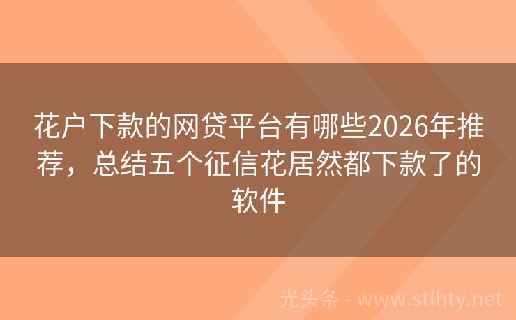 花户下款的网贷平台有哪些2026年推荐,总结五个征信花居然都下款了的软件 “征信花了,借钱无门?”这是许多朋友心中的疑虑,即便征信记录不佳,也有一些平台愿意为您提供借款服务,我就为大家推荐五个实力派花户下款的网贷平台有哪些,让您在急需资金时不再犯难。 2026年的花户下款的网贷平台有哪些有:闪电宝、闪电侠钱包、随手借、钱袋速借宝、小米易贷等。 一、闪电宝 闪电宝是一款综合...