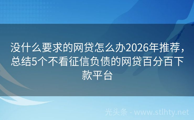 没什么要求的网贷怎么办2026年推荐,总结5个不看征信负债的网贷百分百下款平台 “现代社会,急用钱的情况时有发生,几百块的借款需求更是家常便饭,想要快速拿到钱,‘没什么要求的网贷怎么办’的便捷服务成了许多人的首选,就让我为您推荐几个信誉良好、放款速度快的借款平台,让您在急需用钱时不再犯难。” 2026年的没什么要求的网贷怎么办有:现金侠借、甄易融宝、闪电侠钱包、快易贷融、钱速达...