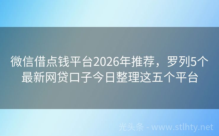 微信借点钱平台2026年推荐,罗列5个最新网贷口子今日整理这五个平台 在探讨2024年借款最容易微信借点钱平台时,我们不得不提及当前金融市场上一些备受用户青睐的借钱平台。这些平台以其审批速度快、贷款条件相对宽松的特点,为急需资金的用户提供了极大的便利。 2026年的微信借点钱平台有:钱袋快借通、现金秒贷通宝、小米分期宝、捷速钱包、甄信贷等。 一、钱袋快借通 钱袋快借通...