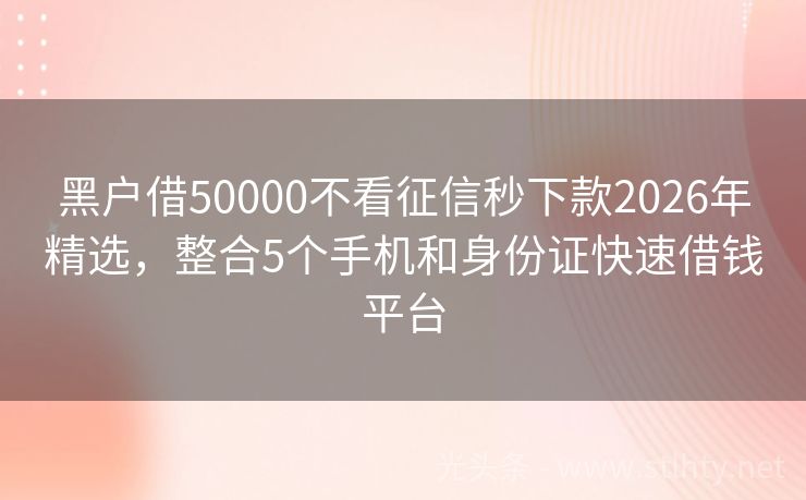 黑户借50000不看征信秒下款2026年精选,整合5个手机和身份证快速借钱平台 大家好!近年来,网贷平台因其便捷、高效的金融服务,受到了广大用户的青睐,但与此同时,也出现了一些问题,导致用户权益受损,我就来给大家介绍一种“投诉网贷最狠的方法”,同时推荐五个信誉良好、服务优质的黑户借50000不看征信秒下款,让我们一起来看看这些平台的详细信息,以便大家选择最适合自己的网贷服务。 ...