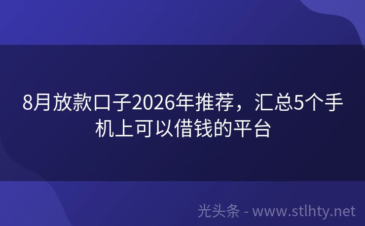 8月放款口子2026年推荐,汇总5个手机上可以借钱的平台 在这个时代,资金周转成了许多人的迫切需求,当遇到紧急情况需要用钱时,征信报告上的瑕疵可能成为借款的绊脚石,有没有什么平台借钱不看征信而且容易通过的呢?答案是肯定的!我将为大家推荐五个信誉良好、门槛较低、审批快速的8月放款口子,让您在关键时刻轻松解决资金问题。 2026年的8月放款口子有:快捷宝融、平...