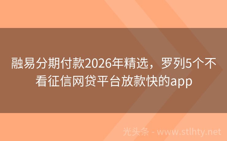 融易分期付款2026年精选,罗列5个不看征信网贷平台放款快的app 在这个快节奏的时代,我们时常会遇到资金周转的难题,不用愁,今天我要给大家推荐几个不看大数据、不看征信,100%通过率的融易分期付款,让你轻松借到5000元,解决燃眉之急!就让我为大家详细介绍这五个融易分期付款,让您的借款之路更加顺畅! 2026年的融易分期付款有:星辉贷款通、乐享钱包、麻袋财富、森森...