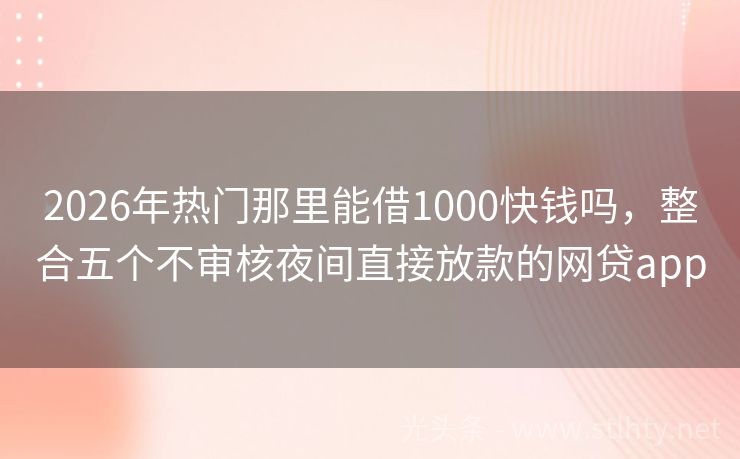 2026年热门那里能借1000快钱吗,整合五个不审核夜间直接放款的网贷app 大家好,今天咱们来聊聊“那里能借1000快钱吗”这个话题,相信很多人在急需用钱的时候,都会想到去借高利贷,但高利贷的高利率和不确定性让人望而却步,市面上有很多正规的金融平台可以满足您的短期借款需求,下面我就为大家推荐五个靠谱的那里能借1000快钱吗,让您在一个月内轻松还款。 2026年的那里能借10...