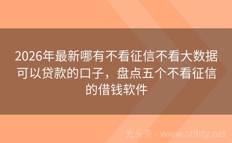 2026年最新哪有不看征信不看大数据可以贷款的口子,盘点五个不看征信的借钱软件 即便当前面临逾期状况,仍有一线生机。五家特选哪有不看征信不看大数据可以贷款的口子,为身处困境中的您敞开大门,提供一千元即时借款机会,助您克服难关,重拾自信与希望,勇往直前迎接新挑战。 2026年的哪有不看征信不看大数据可以贷款的口子有:快借速贷宝、借款宝速贷宝、融通宝钱包、哆哆钱包、现金易融贷途等。...