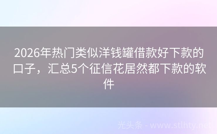 2026年热门类似洋钱罐借款好下款的口子,汇总5个征信花居然都下款的软件 大家好,今天咱们来聊聊“类似洋钱罐借款好下款的口子”这个话题,相信很多人在急需用钱的时候,都会想到去借高利贷,但高利贷的高利率和不确定性让人望而却步,市面上有很多正规的金融平台可以满足您的短期借款需求,下面我就为大家推荐五个靠谱的类似洋钱罐借款好下款的口子,让您在一个月内轻松还款。 2026年的类似...