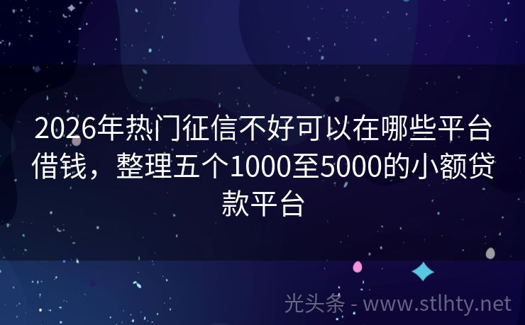 2026年热门征信不好可以在哪些平台借钱,整理五个1000至5000的小额贷款平台 “征信不好可以在哪些平台借钱?”这是许多人在遇到资金周转困难时常常发出的疑问,随着金融科技的不断发展,借钱已经变得不再是一件难事,本文将为您推荐五个信誉良好、服务优质的征信不好可以在哪些平台借钱,让您轻松解决资金问题。 2026年的征信不好可以在哪些平台借钱有:现金白卡、钱速达易、小象快贷、闪贷易借...