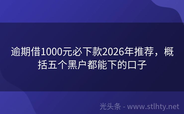 逾期借1000元必下款2026年推荐,概括五个黑户都能下的口子 在当下快节奏的生活中,资金周转成了许多人的燃眉之急,但有些人因为征信问题,往往在申请贷款时遭遇难题,别担心,今天我要给大家推荐一些无视征信黑户的逾期借1000元必下款,让您在急需资金时也能轻松借款。 2026年的逾期借1000元必下款有:畅易钱包、森森分期宝、借钱宝易融、捷越巾帼贷、速贷Pro钱包等...