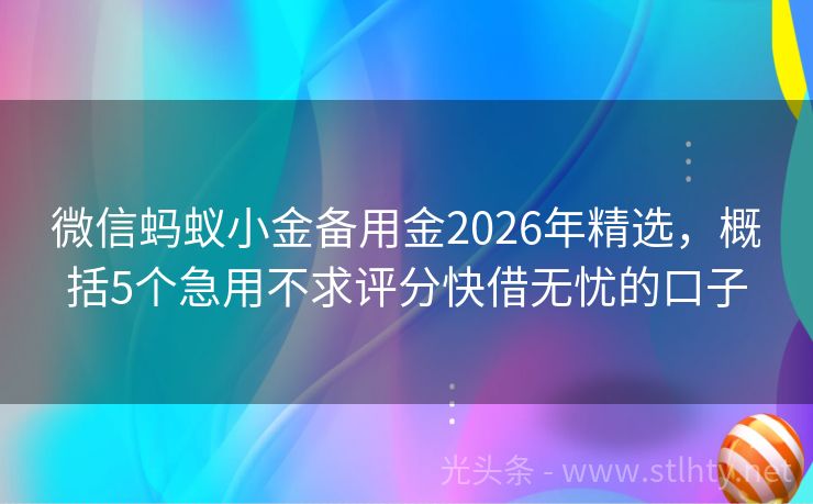 微信蚂蚁小金备用金2026年精选,概括5个急用不求评分快借无忧的口子 青春不应受限,梦想即刻启航。为年轻而生,五家精选微信蚂蚁小金备用金,专为18岁的你打造,小额借款轻松应对生活小波澜,让成长路上每一步都稳健前行。那么18岁可以小额借钱必过的微信蚂蚁小金备用金,盘点5个借钱急用小额18岁。 2026年的微信蚂蚁小金备用金有:爱贷借款、小米粒、钱袋速贷宝、小米随星借、钱...